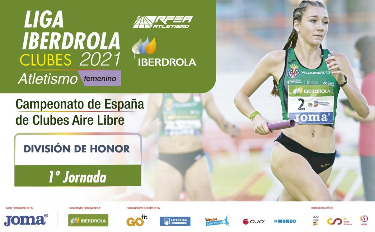 En esta 1ª Jornada de División de Honor, se celebrarán cuatro Encuentros cuadrangulares, todos ellos en horario de tarde (15:00 a 18:40 horas). En cada Encuentro se celebrarán 20 pruebas, a dos atletas por prueba, más cuatro atletas en cada uno de los dos relevos.