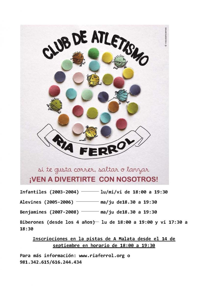 El Club de Atletismo "Ría Ferrol-Concepción Arenal", busca atletas para completar su Equipo Femenino de División de Honor Temporada 2015-2016, en las siguientes pruebas: